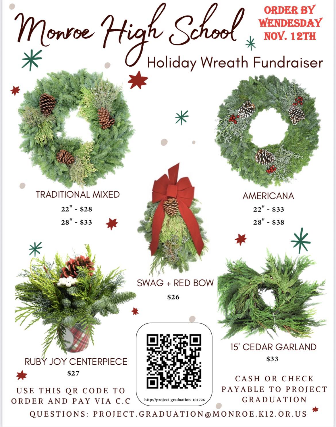 Please reach out to your favorite 2026 Senior to order your wreath, swag, garland or centerpiece or place your order online.